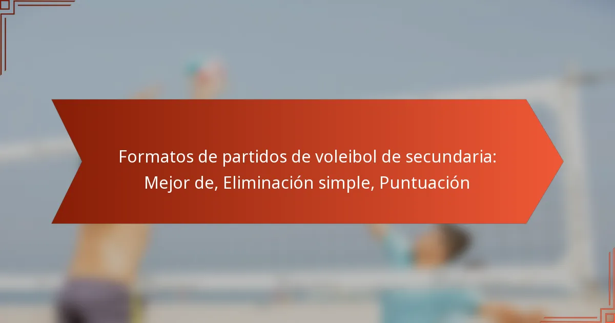 En el voleibol de secundaria, los formatos de partido principales incluyen el mejor de y eliminación simple, cada uno ofreciendo características únicas que afectan el juego y la progresión del torneo. Los sistemas de puntuación, como el sistema de puntuación por rally y el sistema de puntuación tradicional, juegan un papel vital en la determinación de los resultados de los partidos e influyen en cómo los equipos ganan puntos. La familiaridad con estos formatos es esencial para organizar competiciones de manera efectiva y maximizar el rendimiento del equipo.